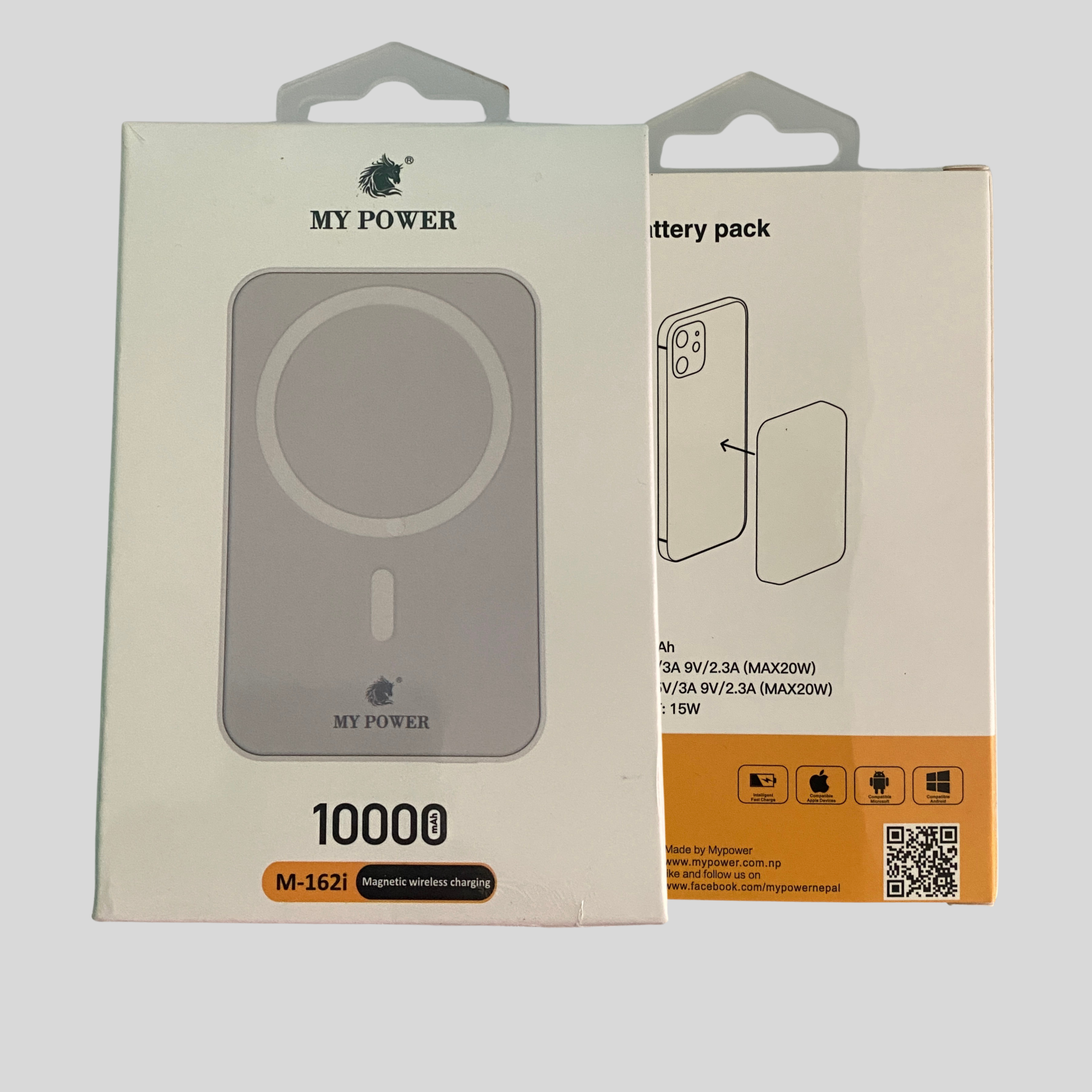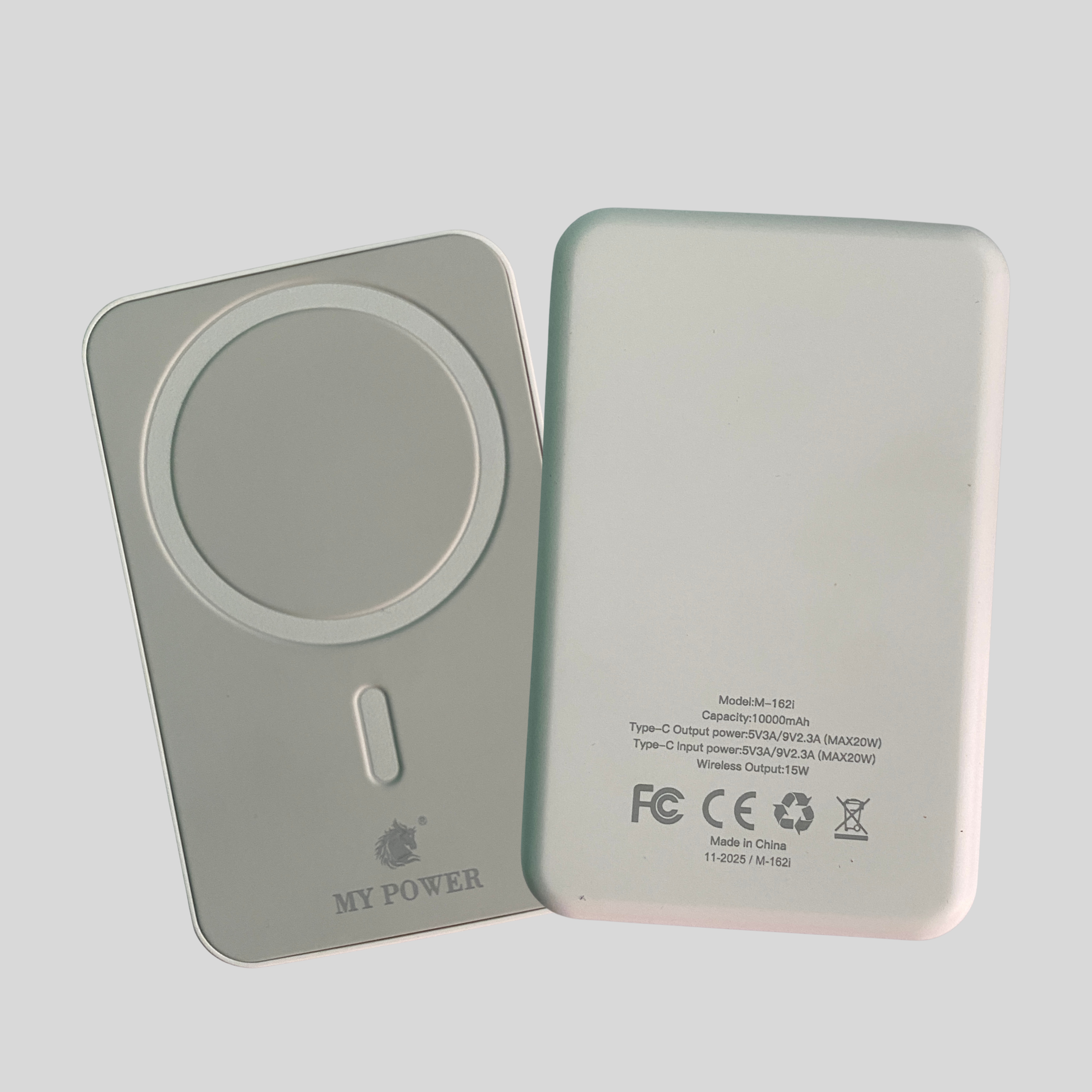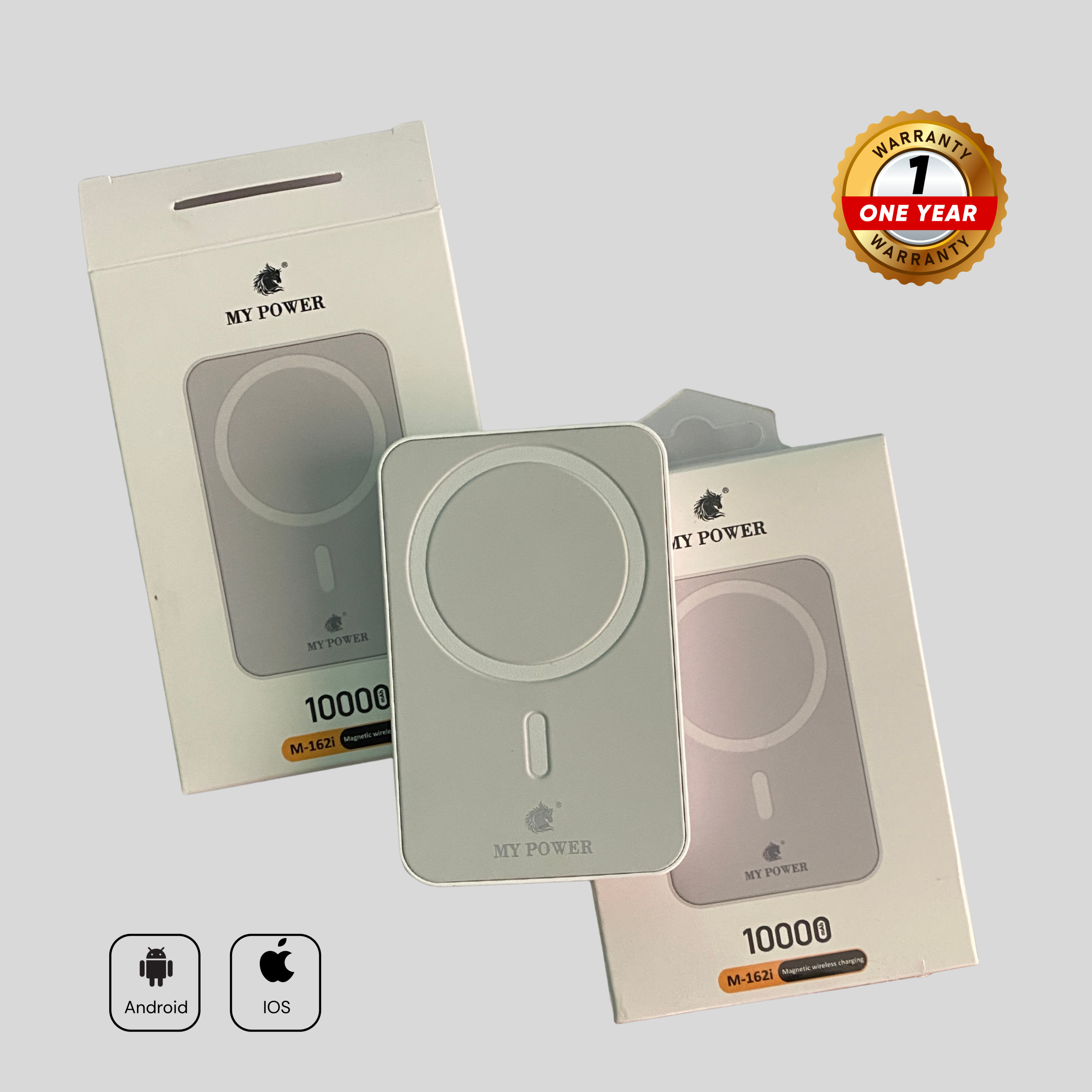 The My Power M-162i Magnetic Wireless Power Bank is a powerful and portable charging solution designed for modern smartphones. With a 10000mAh high-capacity battery, it provides reliable backup power wherever you go.